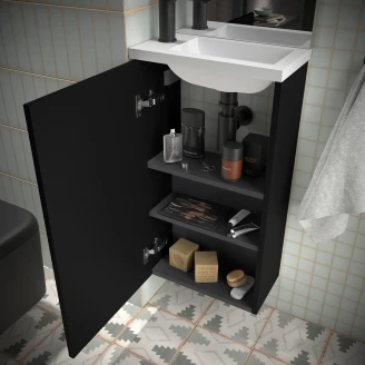 • Väggskåp Nemi kombinerar stilren design med praktisk funktionalitet. Perfekt för att skapa extra förvaringsutrymme i badrummet, samtidigt som det matchar övriga möbler i kollektionen.