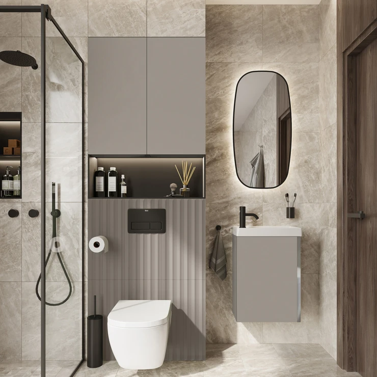 Badrumsmöblerna i Unity-kollektionen kan komplettera alla badrumsserier från sortimentet.