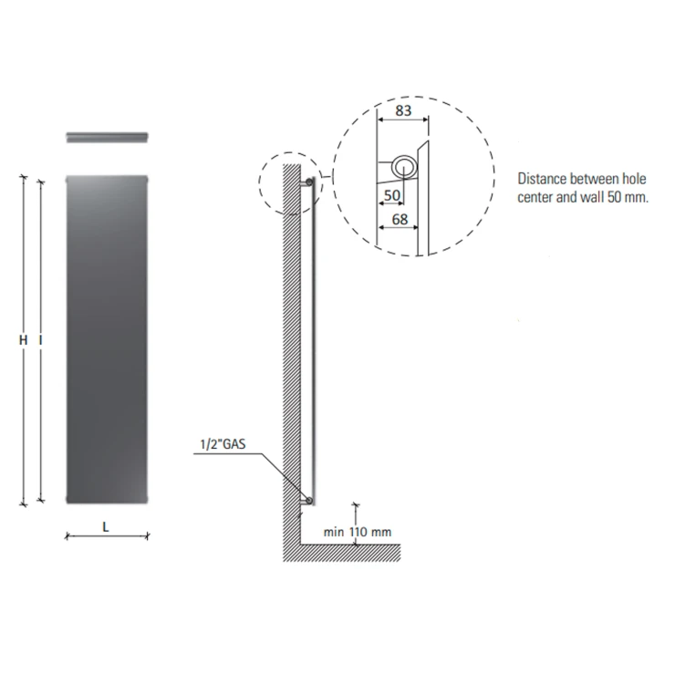 • Avstånd mellan hålcentrum och vägg: 50 mm