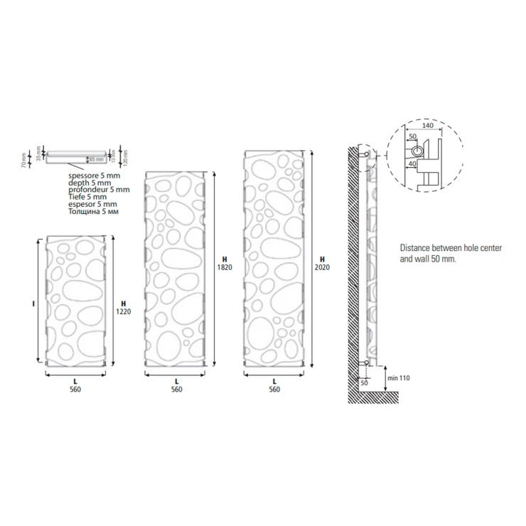• Avstånd mellan hålcentrum och vägg: 50 mm