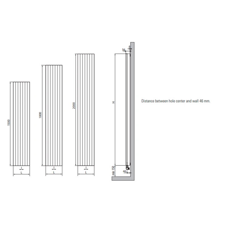 • - Avstånd mellan hålcentrum och vägg: 46 mm