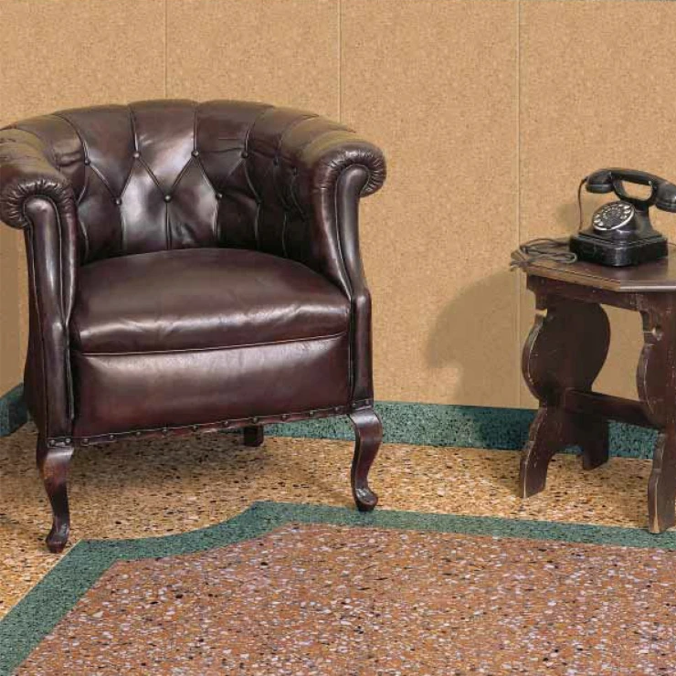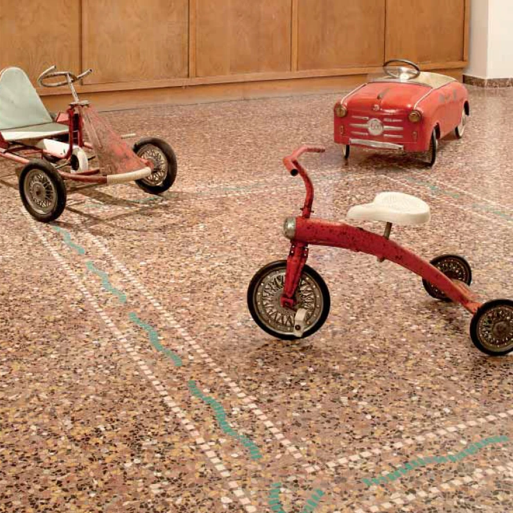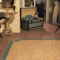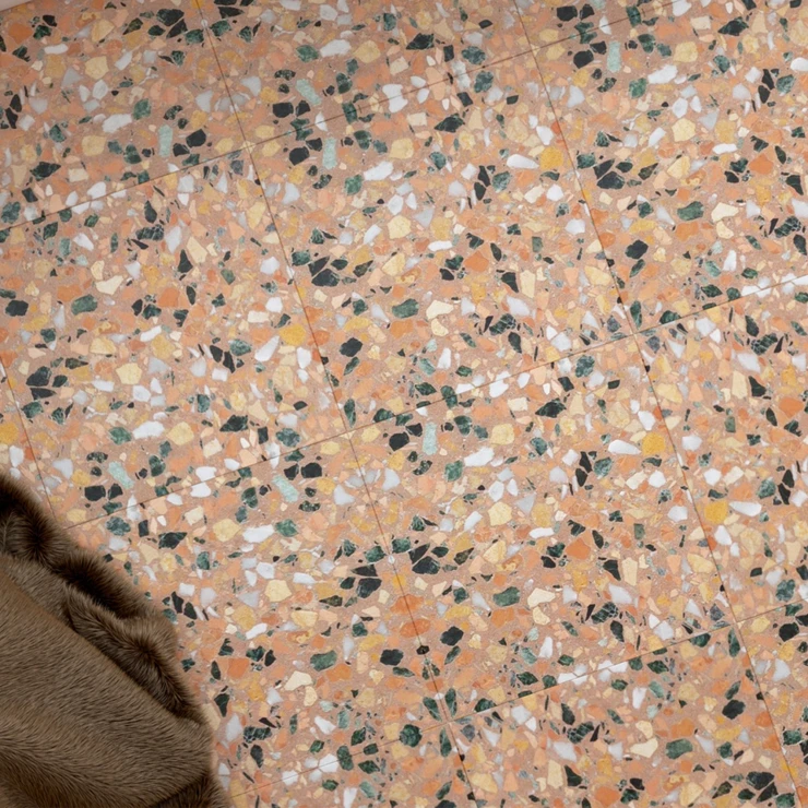 Terrazzo från Grandinetti följer de gamla recepten, tillverkat av marmor, cement, naturliga färgämnen och vatten. Hela produktionsprocessen av plattorna sker i ett litet familjeföretag i Italien som har handtillverkat terrazzo i mer än 100 år.