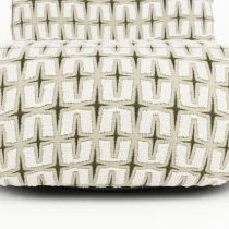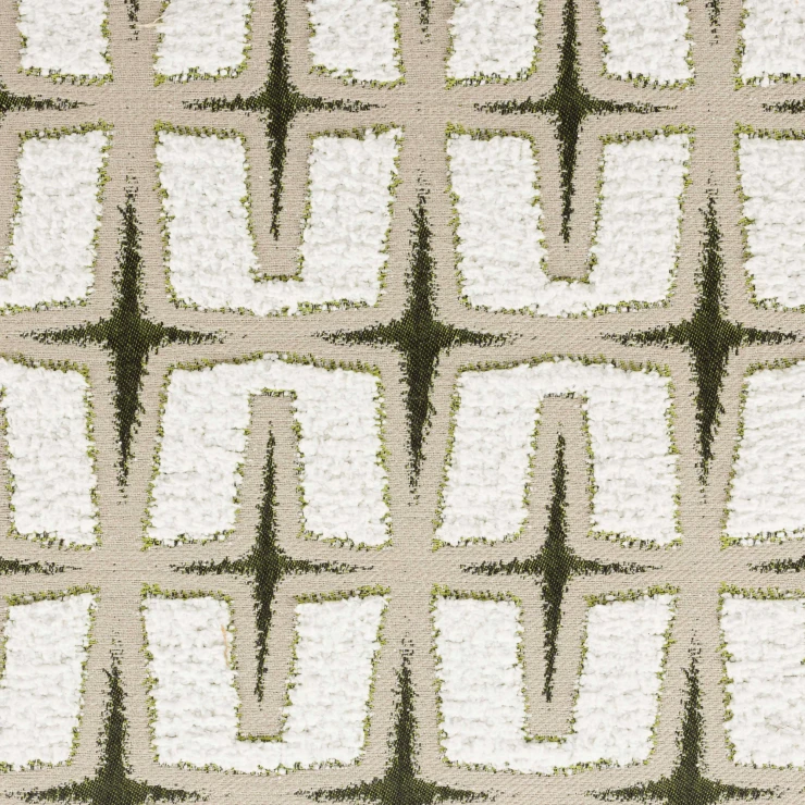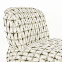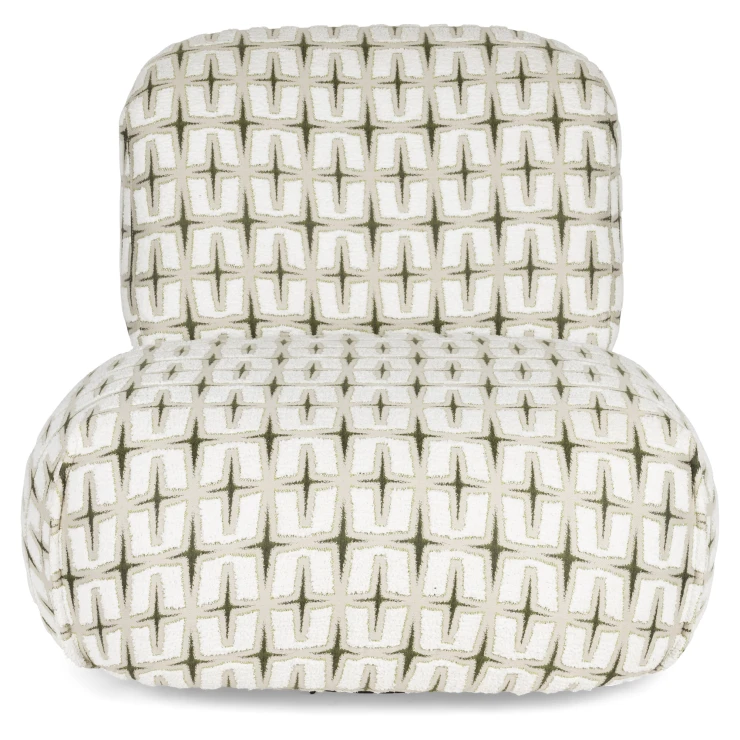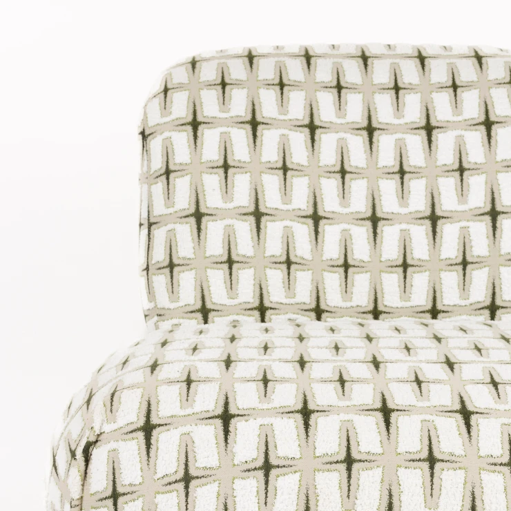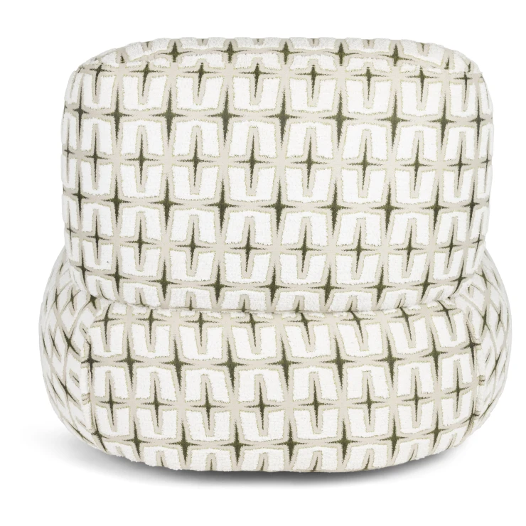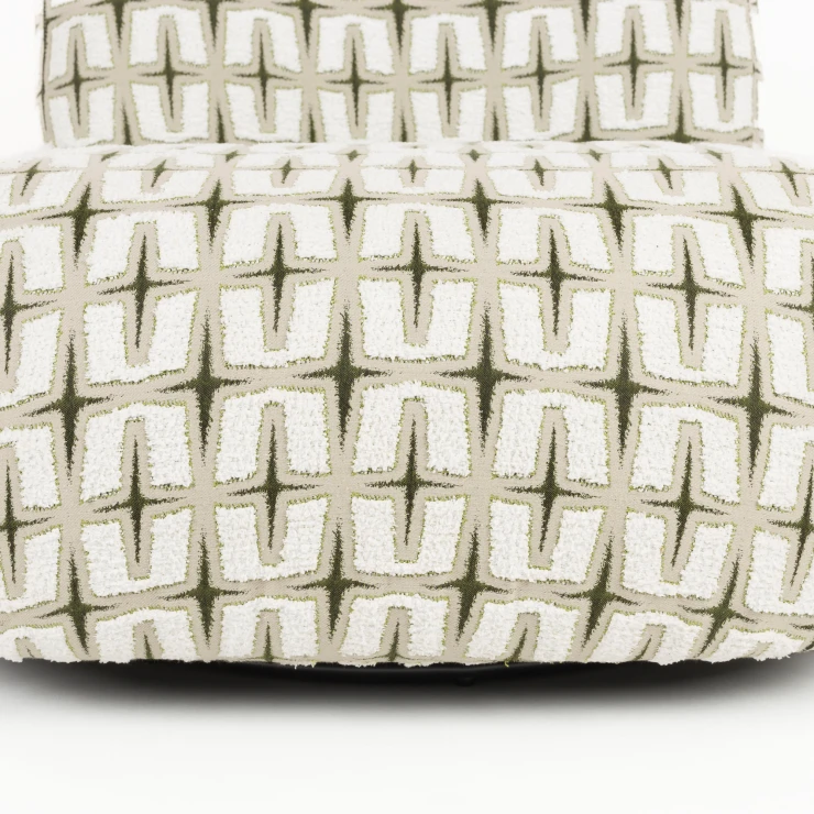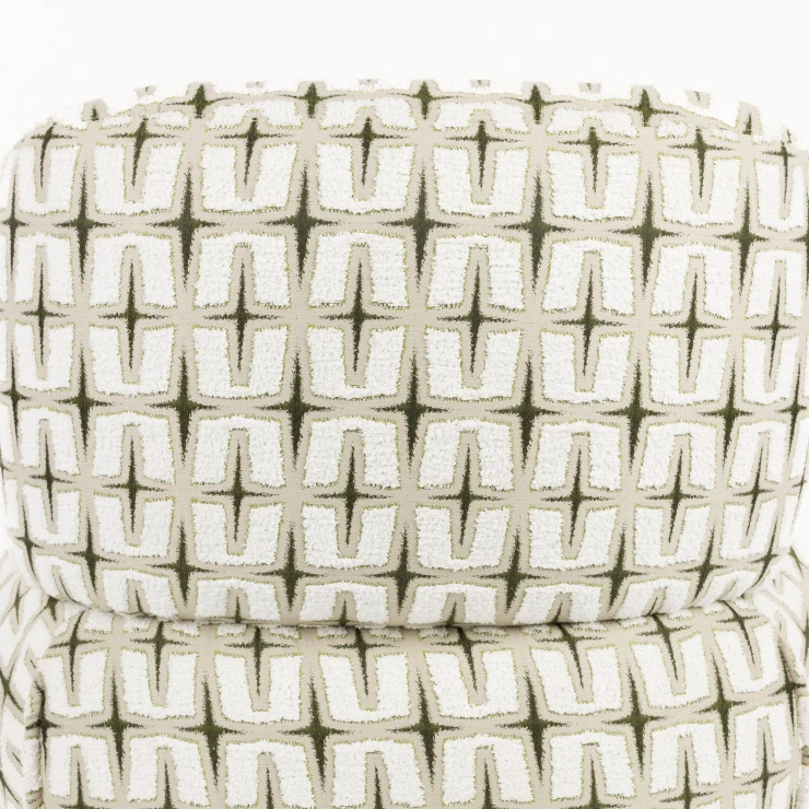 • - Klädd i vävt tyg med djärvt grafiskt mönster