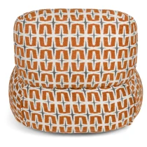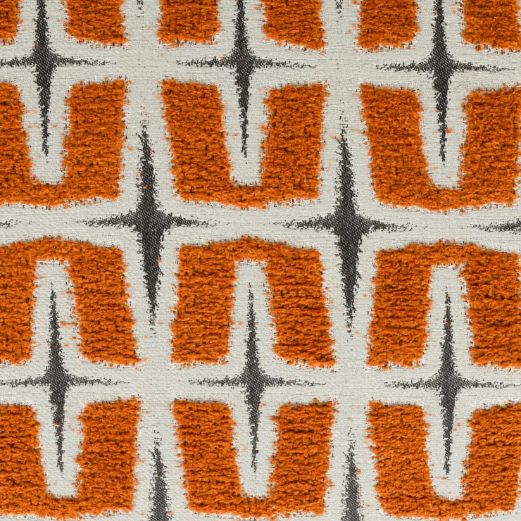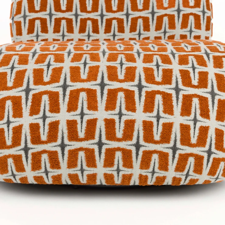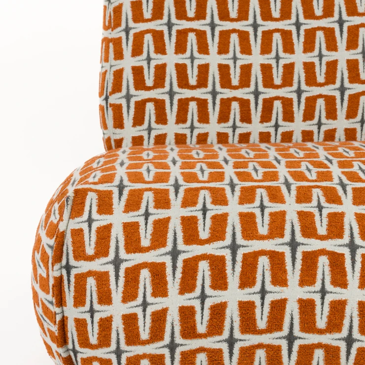 • - Klädd i vävt tyg med djärvt grafiskt mönster