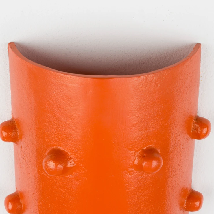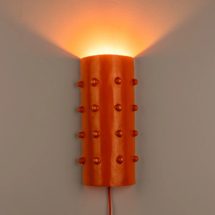 • Nyp mig! Denna vägglampa, soffbord och sidobord är så roliga – det känns nästan som en oas. Designen är ingen tillfällighet; den är inspirerad av en kaktus. De små upphöjningarna ger ett lekfullt uttryck. Och som om inte det redan var tillräckligt färgstarkt, är aluminiumet behandlat med en iögonfallande orange pulverlackering. Hur kan det inte göra dig glad direkt? Det perfekta sättet att ge din inredning en djärv och livfull touch.