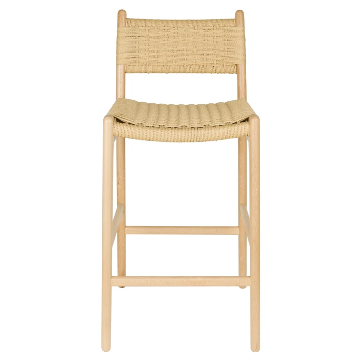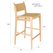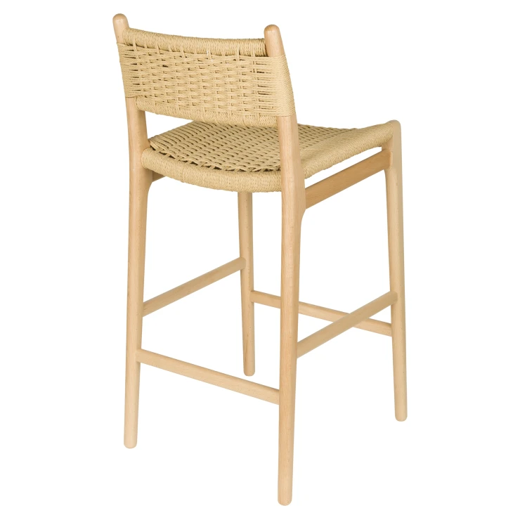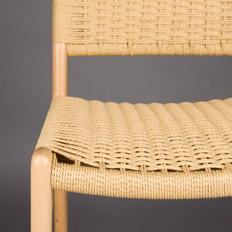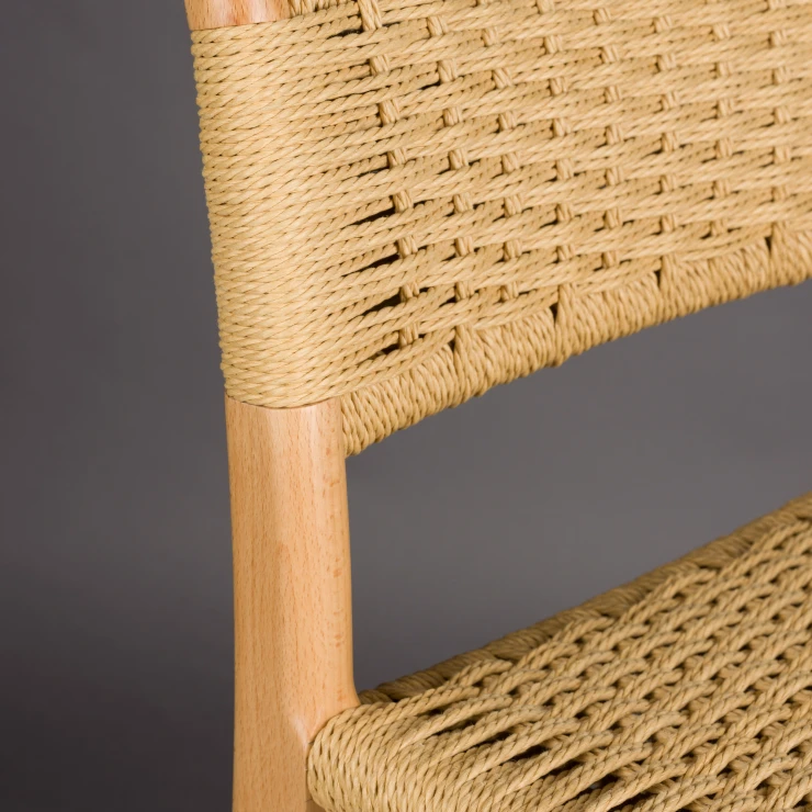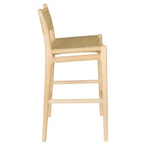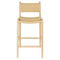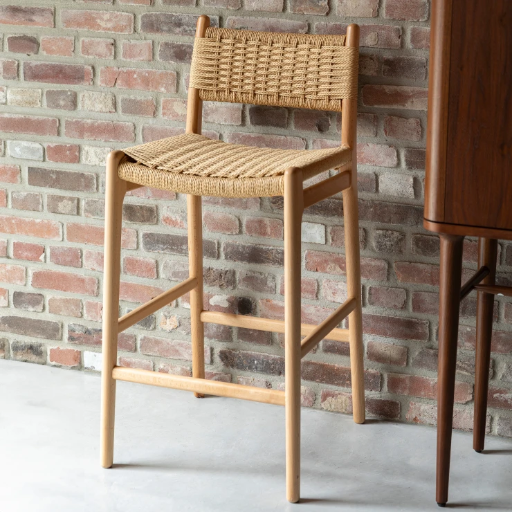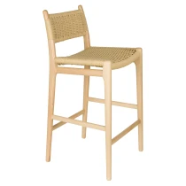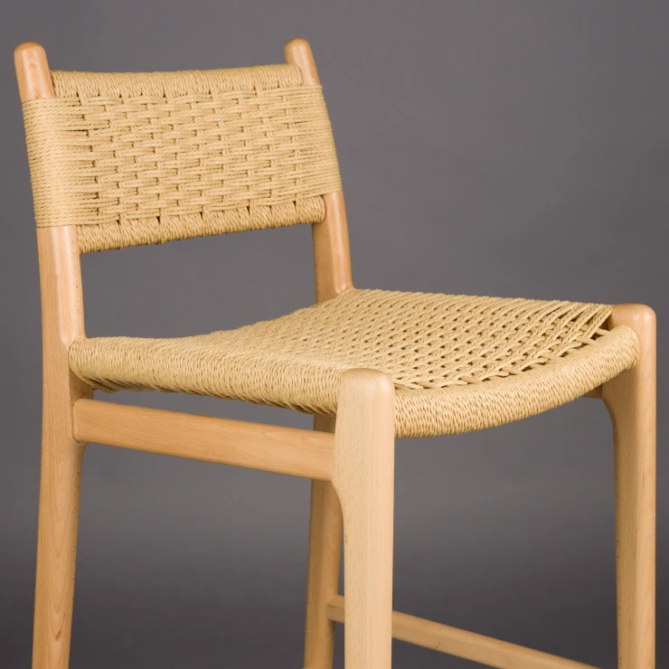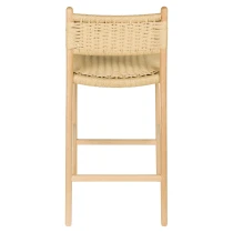 • Den ljusa träramen i naturlig finish kombineras med en iögonfallande sits och ryggstöd i flätad rep, en subtil nick till 1950- och 60-talets interiörer, men samtidigt perfekt anpassad till det moderna hemmet. En karaktärsfull möbel som genast skapar stämning vid baren eller köksön.