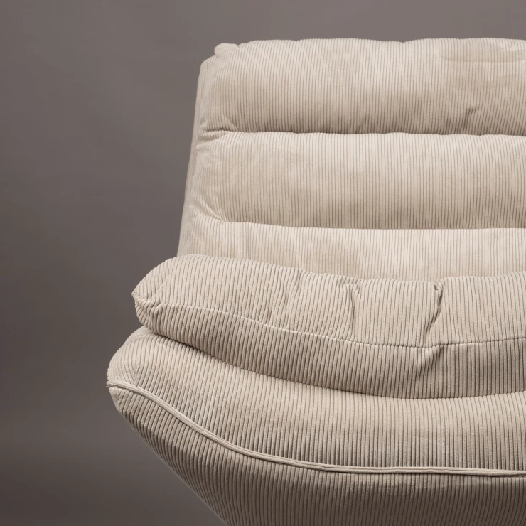 • Dutchbone Vince behöver inget test. Du ser genast att du kommer att sjunka härligt i denna fåtölj. Komfort är vad denna fåtölj handlar om. Fåtöljen är generöst klädd med mjuk kordflorsväv. Så den känns inte bara underbar, utan har även ett sofistikerat och ultra-atmosfäriskt utseende. Och om denna stora fåtölj inte ser tillräckligt inbjudande ut, gör den extra sittdynan den verkligen oemotståndlig. Ingen kan gå förbi denna fåtölj utan att sjunka ner i den för att njuta av en favoritbok och en kopp varmt te.