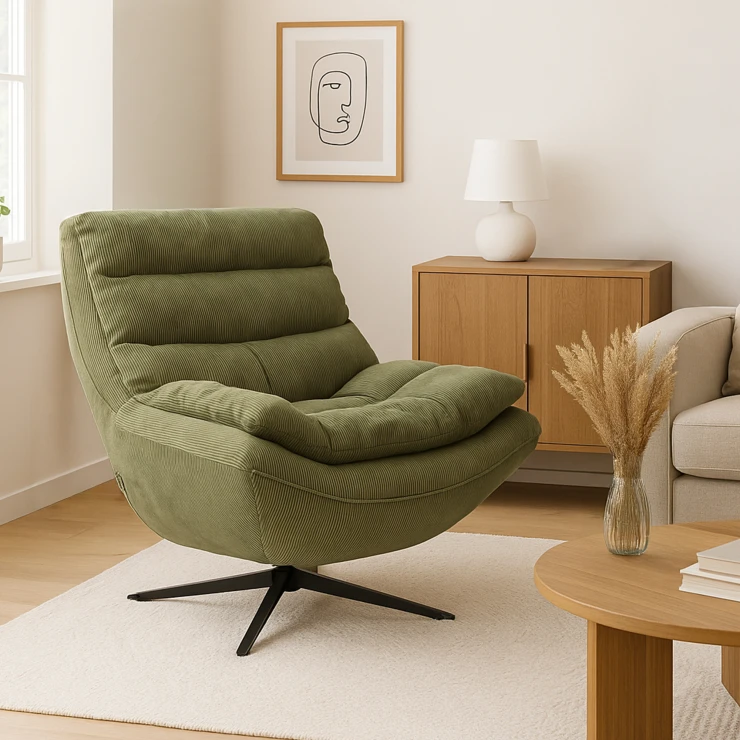 • Dutchbone Vince behöver inget test. Du ser genast att du kommer att sjunka härligt i denna fåtölj. Komfort är vad denna fåtölj handlar om. Fåtöljen är generöst klädd med mjuk kordflorsväv. Så den känns inte bara underbar, utan har även ett sofistikerat och ultra-atmosfäriskt utseende. Och om denna stora fåtölj inte ser tillräckligt inbjudande ut, gör den extra sittdynan den verkligen oemotståndlig. Ingen kan gå förbi denna fåtölj utan att sjunka ner i den för att njuta av en favoritbok och en kopp varmt te.