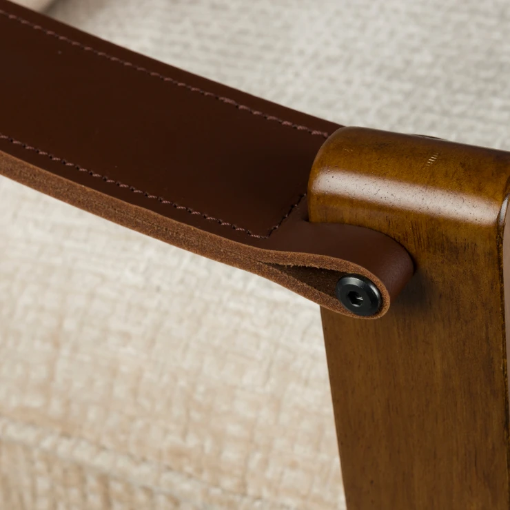 • Förstärk atmosfären i din sittgrupp med Dutchbone Washington. Denna fåtölj utmärker sig genom sin träram i en vacker valnötsfinish. Läderarmstöden tillför en stilig detalj som gör stolen lite mer unik. De djupa tonerna i träet och lädret skapar en vacker kontrast mot de ljusa sitt- och ryggkuddarna. Kuddarna ger en bekväm sittupplevelse och känns underbart mjuka tack vare det fylliga tyget. Det subtila vävda mönstret fulländar designen och tillför en fin vintagekänsla.