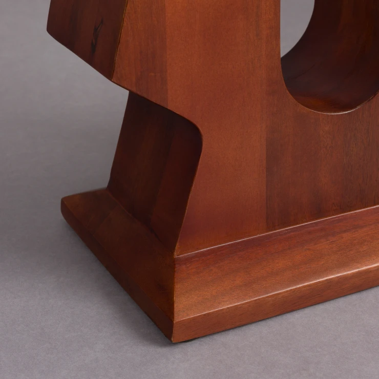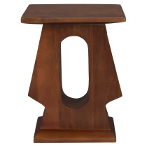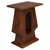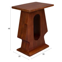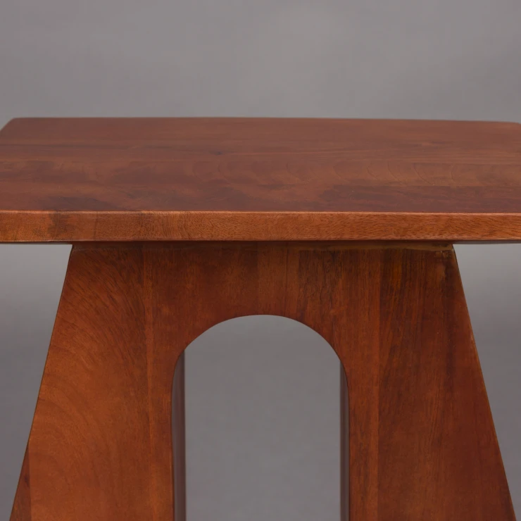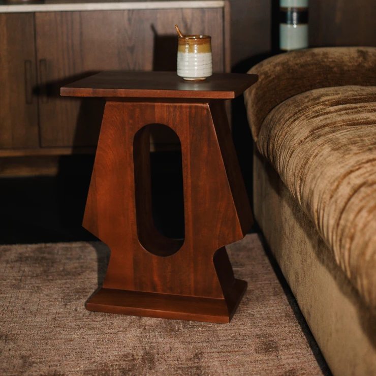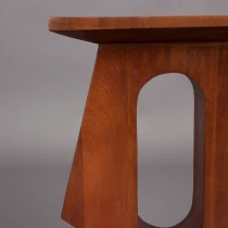 • Sidobord Dutchbone Pilaster fyller den där tomma platsen i rummet med en atmosfärisk touch. Den markanta formen med sluttande linjer och det öppna utrymmet i mitten påminner nästan om en antik klocka. Tillsammans med den djupa valnötsfärgen i det massiva mangoträet får bordet en karaktäristisk design som kunde vara hämtad från ett 50-talshem. Detta ger ett unikt uttryck som snabbt tillför värme till din inredning.