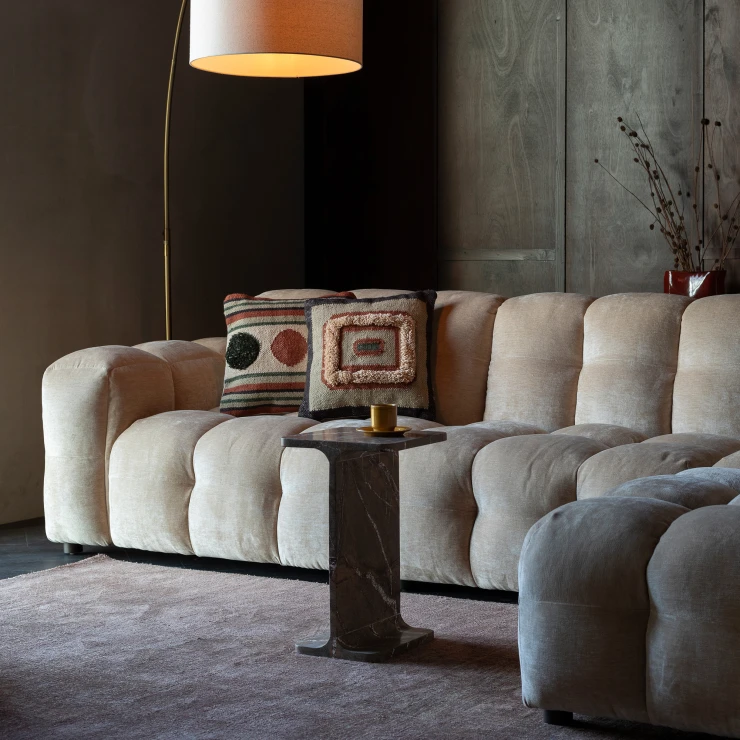 • Oavsett om du har en liten, mysig sittgrupp eller ett rymligt vardagsrum passar Dutchbone Hackman alltid in. Denna modulsoffa består av olika element som du kan kombinera efter eget önskemål. Använd ett enskilt element som fåtölj, ställ två bredvid varandra för en 3-sitssoffa eller bygg ut ytterligare för att skapa plats för hela familjen – precis det som passar ditt hem. Designen med kvadratiska paneler och de djupa tonerna i sammet- eller läderklädsel ger en härlig retro-känsla som genast förvandlar rummet till en varm och inbjudande plats.