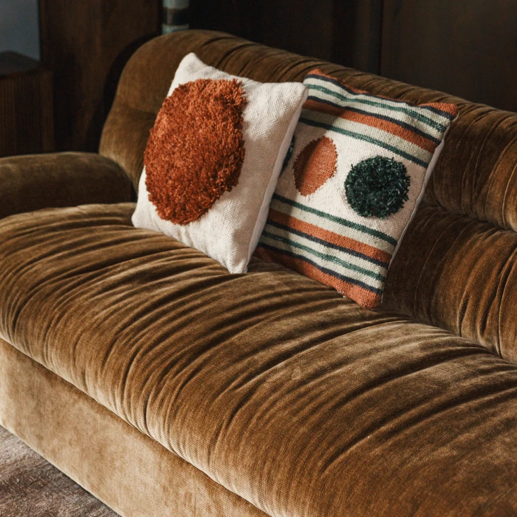 • Du kommer att vilja titta på Dutchbone Douglas hela dagen – så bekväm är den att sitta i. Men denna möbel handlar inte bara om komfort, utan dess utseende är lika oemotståndligt. Det generöst stoppade ryggstödet har lekfulla veck som möts i en horisontell söm. Tillsammans med de rundade formerna och klädseln i läder eller sammet utstrålar den en tydlig Mid Century Modern-känsla som skapar en varm atmosfär. Ett perfekt tillskott till en mysig sittgrupp.