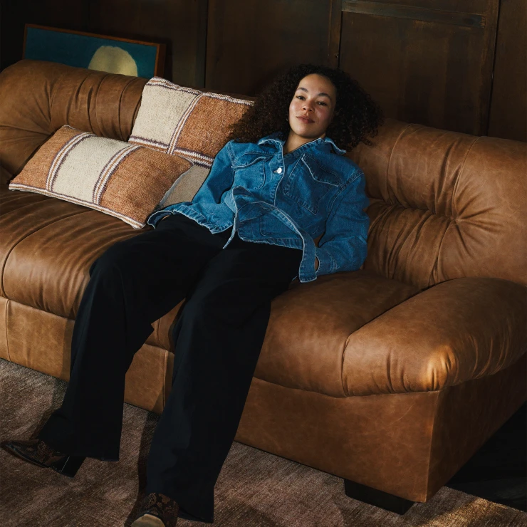 • Du kommer att vilja titta på Dutchbone Douglas hela dagen – så bekväm är den att sitta i. Men denna möbel handlar inte bara om komfort, utan dess utseende är lika oemotståndligt. Det generöst stoppade ryggstödet har lekfulla veck som möts i en horisontell söm. Tillsammans med de rundade formerna och klädseln i läder eller sammet utstrålar den en tydlig Mid Century Modern-känsla som skapar en varm atmosfär. Ett perfekt tillskott till en mysig sittgrupp.