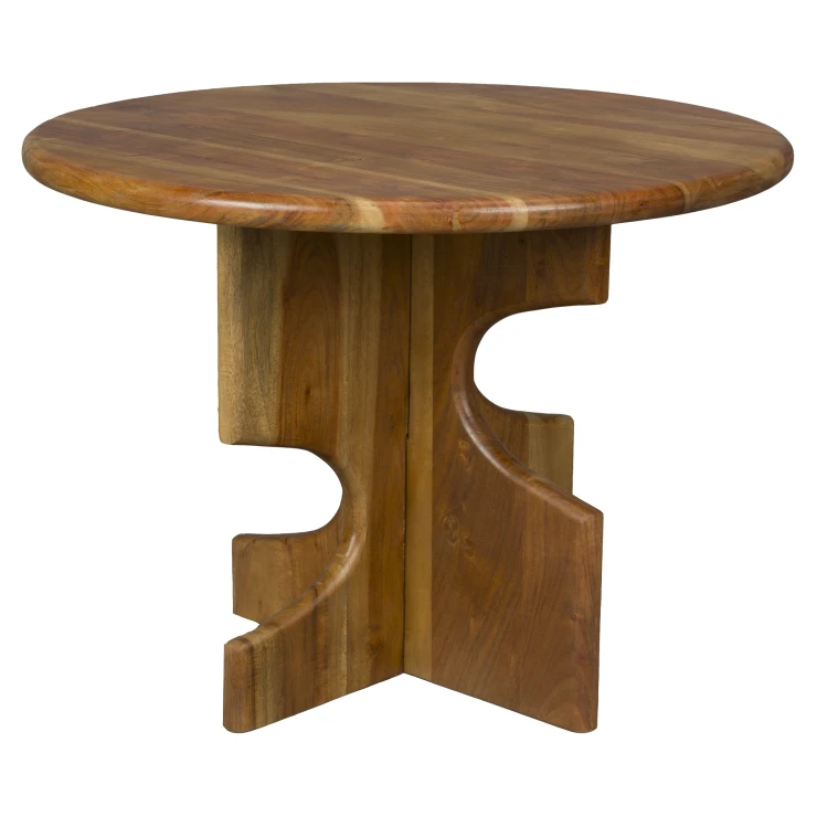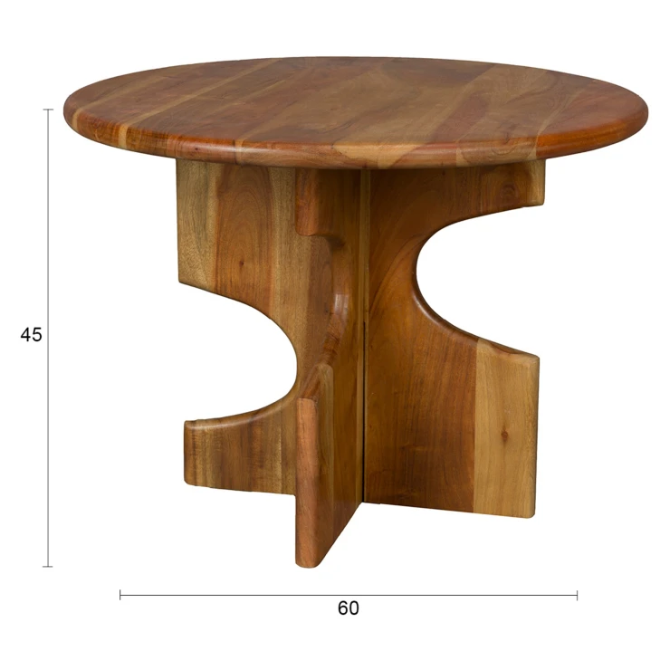 • För extra värme i din inredning är Dutchbone Morgan det perfekta valet. Detta bord, tillverkat i akaciaträ, skapar genast en trivsam atmosfär i rummet. Men det är inte bara materialet som ger möbeln sin karaktär. Det som direkt sticker ut är det unika underredet. Det korsade benet med ojämna urtag skapar en lekfull effekt som gör bordet annorlunda och spännande. Ett perfekt tillskott i ett mysigt vardagsrum eller ett ombonat läshörn.