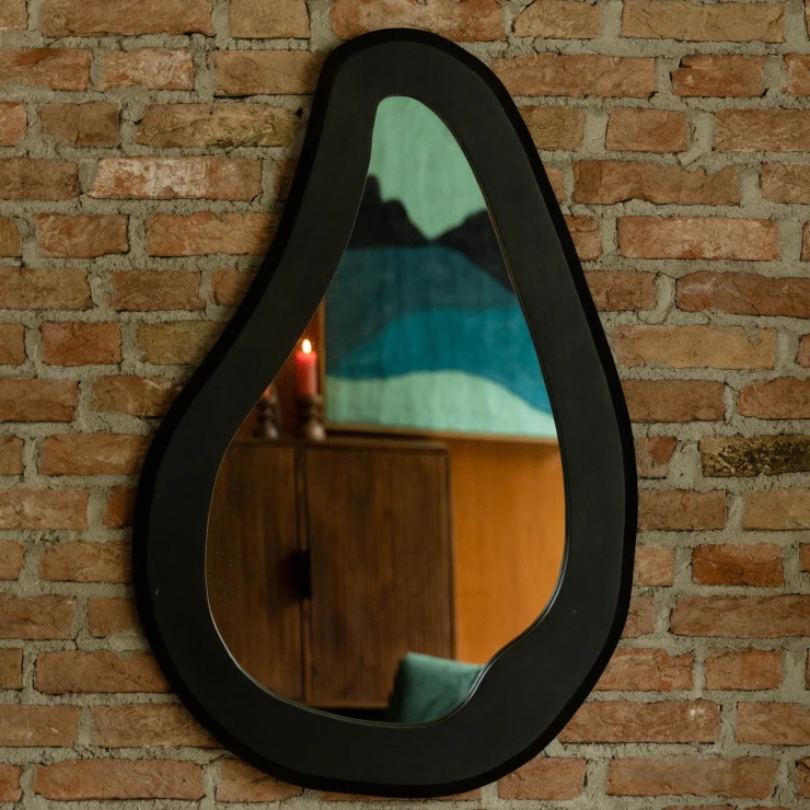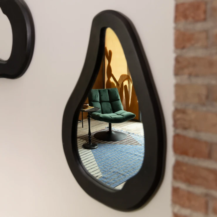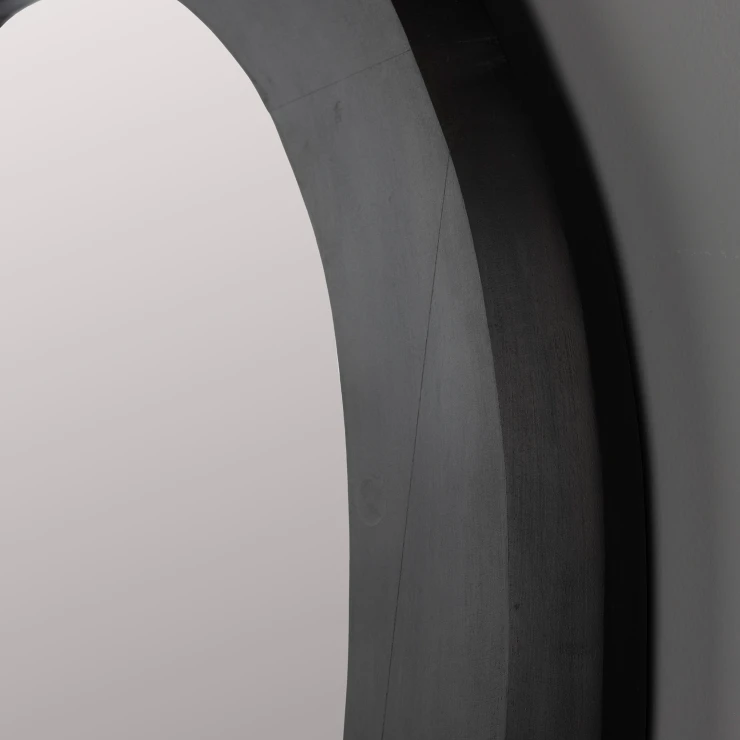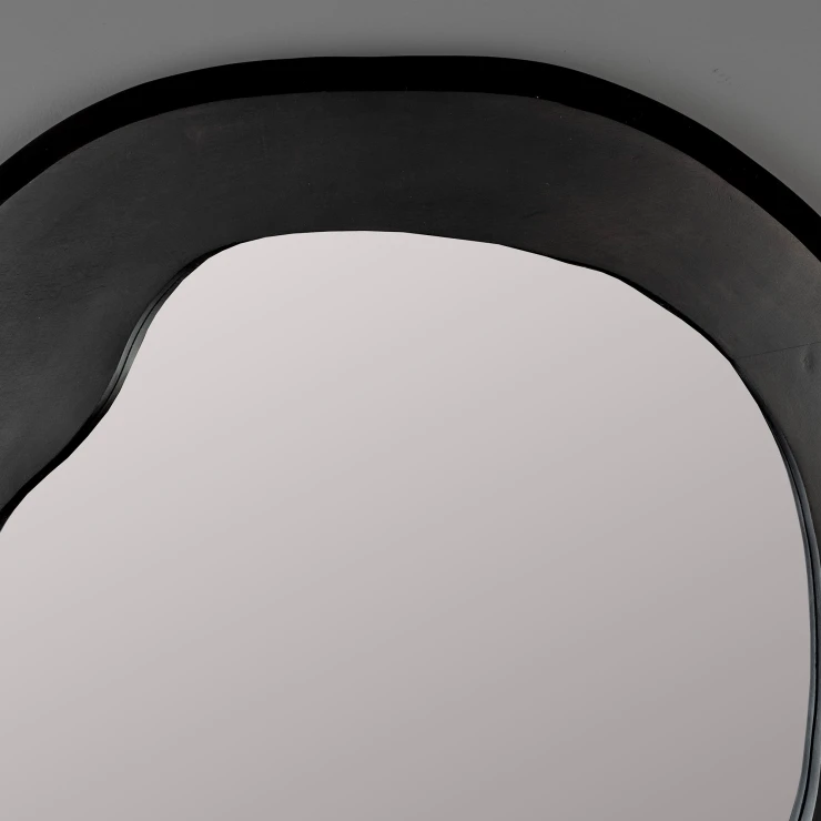 • Förvandla en vägg till rummets mittpunkt med Dutchbone Aren. Med sitt unika utseende fångar denna väggspegel direkt blicken. Det första du lägger märke till är den organiska formen och den breda ramen. Ramen är tillverkad av högkvalitativt mangoträ och har en stilfull svart lack. Ytan på ramen är medvetet inte helt slät och har små ojämnheter här och där. Detta ger ännu mer karaktär och skapar ett fint, perfekt ofullkomligt uttryck. En look som fyller rummet med en varm känsla och en tuff, personlig stil.