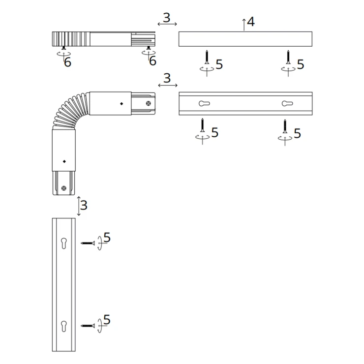 • Alla anslutningsdelar finns i både svart och vit finish. Vill du inte montera direkt på väggen eller taket finns även ett upphängningsset som gör det möjligt att hänga ner skenan.