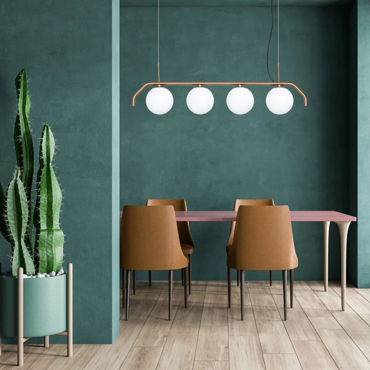 • - Hängande lampa Quadra: En större variant med fyra mjuka ljuskällor i rad, som ger ett jämnt och inbjudande ljus i större rum eller matsalar.