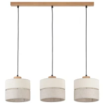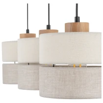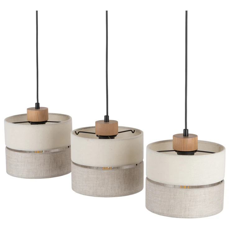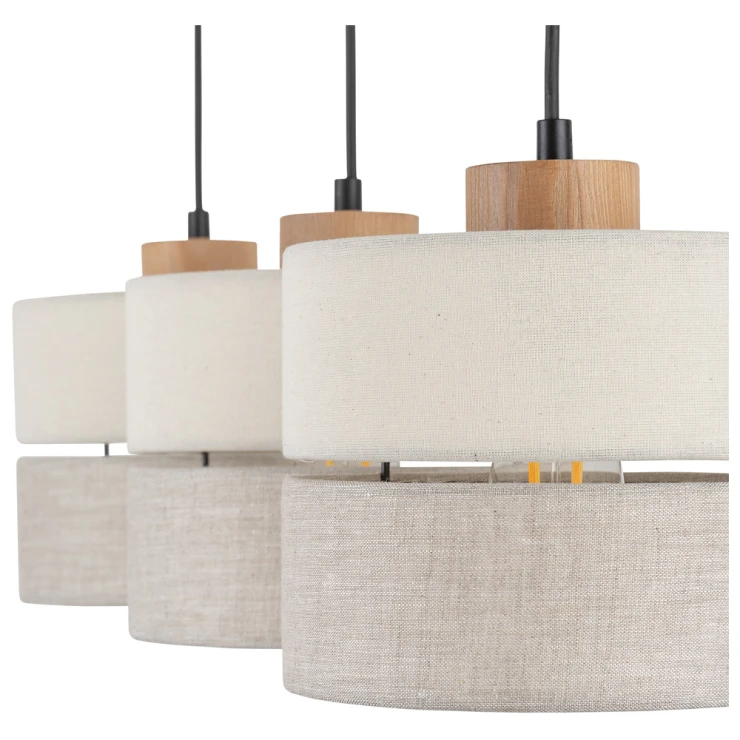 • - Tvåfärgade lampskärmar gjorda av naturligt tyg är särskilt iögonfallande.