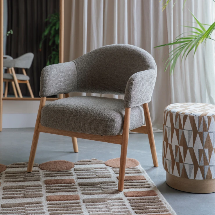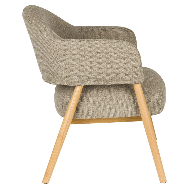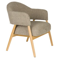 • Loungefåtölj Inza är en elegant och bekväm fåtölj som finns i två färger: ljusbrun och mörkbrun. Den kombinerar en mjuk klädsel i polyester med en stadig stomme i ek, vilket ger både komfort och en naturlig, tidlös design. Perfekt för vardagsrum eller loungeytor.