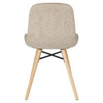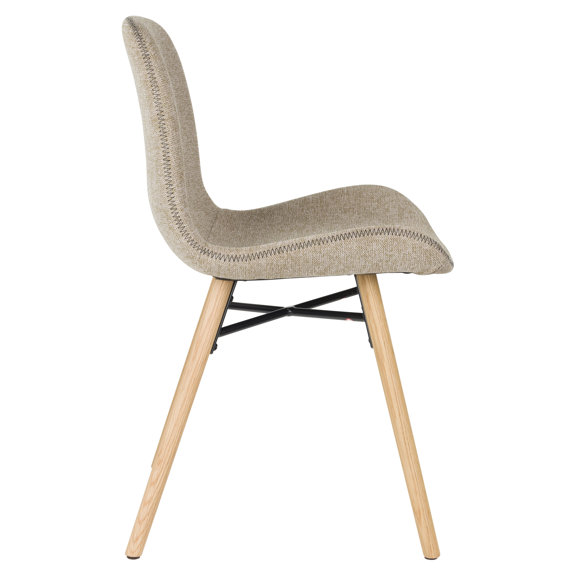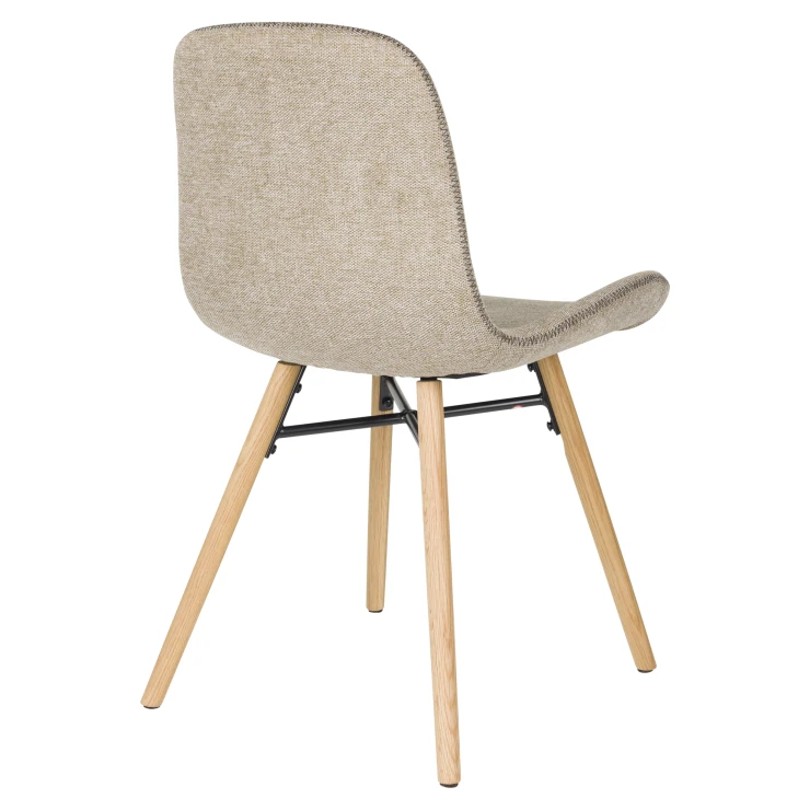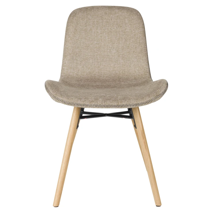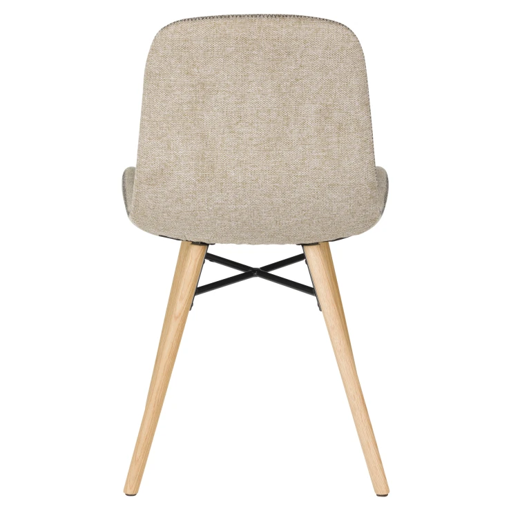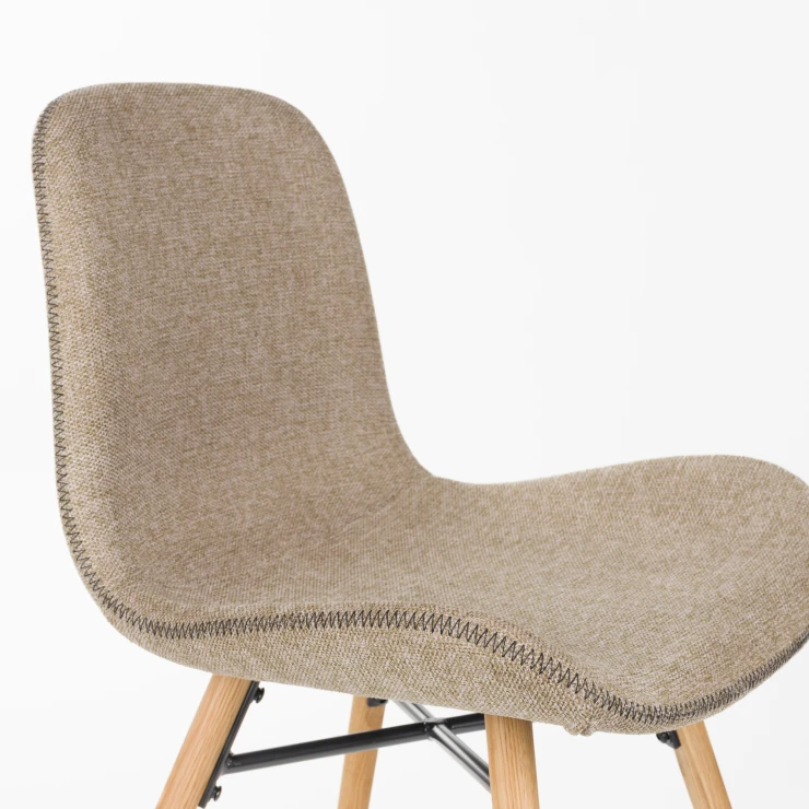 • Den neutrala klädseln gör det enkelt att kombinera stolen med olika inredningsstilar. De markerade sömmarna och det svarta metallkorset som detalj tillför en djärv, modern touch.