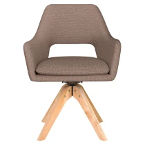• Stol Tiven utstrålar mjukhet och lekfullhet tack vare sina rundade former, armstöden och den luftiga öppningen i ryggstödet. Den lösa sitsdynan gör stolen extra bekväm och perfekt för långa middagar eller trevliga stunder vid bordet.