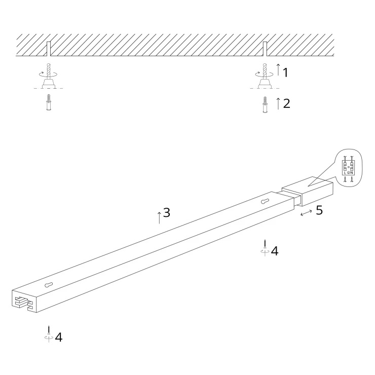 • Alla anslutningsdelar finns i både svart och vit finish. Vill du inte montera direkt på väggen eller taket finns även ett upphängningsset som gör det möjligt att hänga ner skenan.