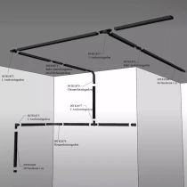 • Alla anslutningsdelar finns i både svart och vit finish. Vill du inte montera direkt på väggen eller taket finns även ett upphängningsset som gör det möjligt att hänga ner skenan.