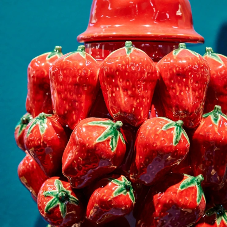 • Kollektionen erbjuder ett brett utbud av former och motiv, från abstrakta mönster till naturinspirerade former som tomater, chili och jordgubbar, vilket ger varje rum en personlig och livfull touch. Vaserna passar perfekt som blickfång på bord, hyllor eller fönsterbrädor, och de fungerar lika bra med som utan blommor.
