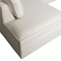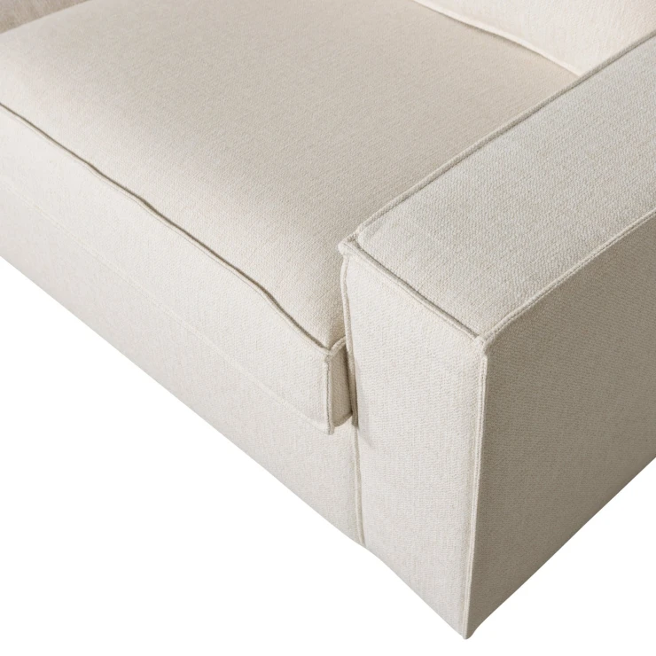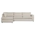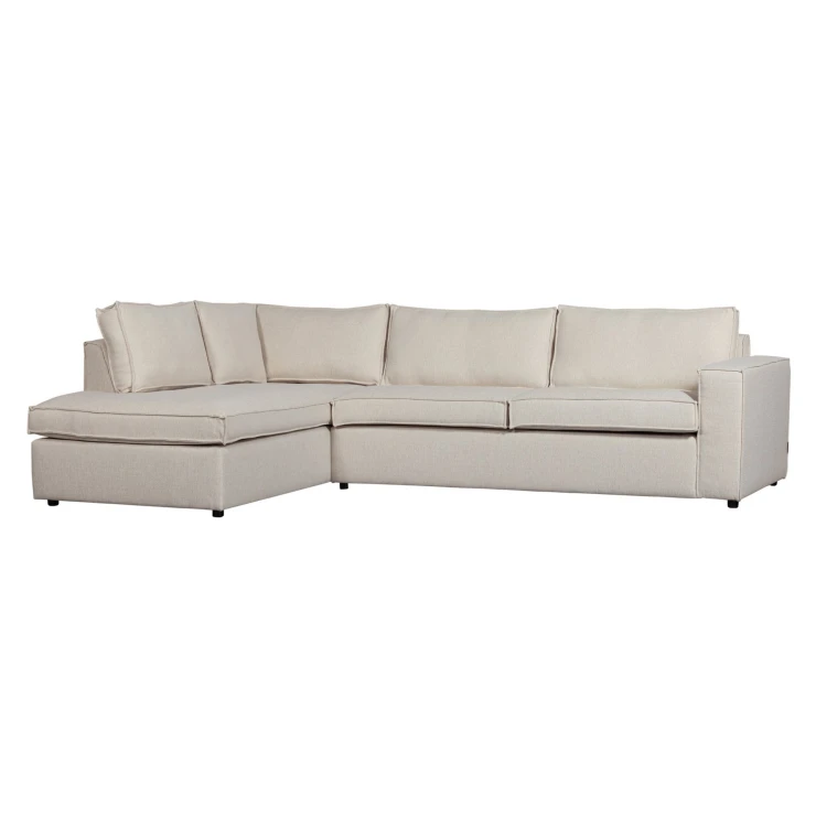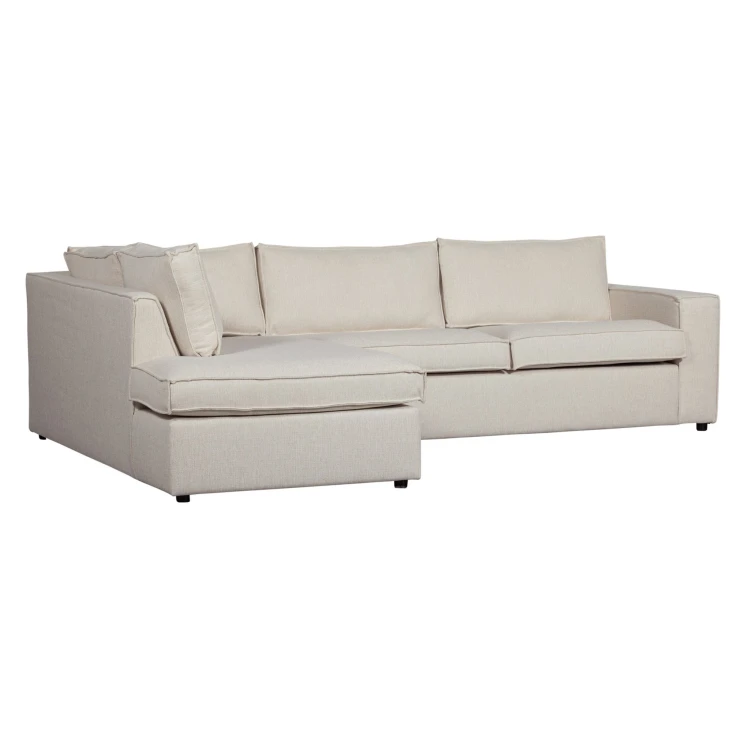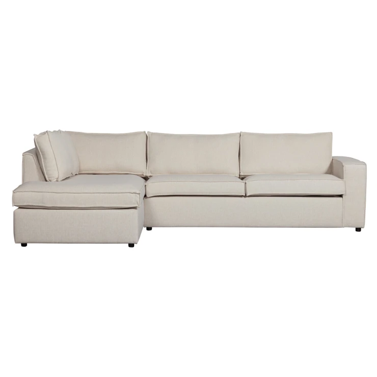 • Tidlös hörnsoffa i generös storlek Med sandfärgat, vävt tyg (100 % polyester) Bekväm sits och starkt tyg H 92 cm x B 283 cm x D 63/197 cm Finns i höger- och vänsterutförande Thomas hörnsoffa är en generös och bekväm hörnsoffa med ett enkelt och varmt utseende. Denna soffa har ett mjukt vävt tyg (100 % polyester) i färgen sand och passar bra in i dagens inredning. Soffan har lösa ryggkuddar och en fast och utmärkt sittkomfort. Thomas-soffan kan beställas med hörnet på vänster eller höger sida. Detta gör soffan lämplig för flera inredningsmiljöer. Soffans sittdjup är 63 cm, det totala djupet på loungedelen är 197 cm. Armstödets höjd är 60 cm. Denna soffa levereras som individuella element och är enkel att montera med hjälp av konsoler. För hårda golv, placera filtglidare under benen. Detta förhindrar skador på golvet.
