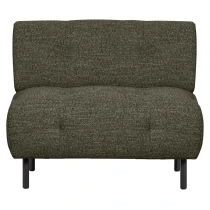 Stommen är tillverkad av lövträ och plywood och täckt med vanligt skum och sicksackfjädrar. Ryggen har HR 30/20 kg/m3 skum, sitsen är fylld med HR 35/32 kg/m3 skum och ett lager HR 30/20 kg/m3 skum. Denna Lloyd är klädd i ett grovvävt tyg. Vår Orari är ett grovvävt tyg med ett mjukt men ändå fast grepp. Tyget har en subtil nyans och ett grovvävt mönster. Orari består av 94 % polyester och 6 % nylon. Det grovvävda tyget är lämpligt för mycket intensiv användning (Martindale 60 000). Orari är känt som ett mycket färgäkta tyg och noppar sig inte lätt.