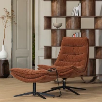 • Snurrfåtöljen Kube med hängsel kommer från det holländska inredningsmärket WOOOD. Både fåtöljen och hängseln är klädda i ett mjukt vävt tyg och står på en robust metallbas. Snurrbasen gör det enkelt att komma igång, vilket ytterligare förbättrar fåtöljens komfort. Detta kommer att bli din nya favoritfåtölj. Sätt upp fötterna och njut!