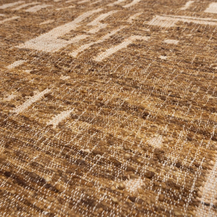 • Ian-mattan från kollektionen från det holländska inredningsmärket WOOOD ger direkt atmosfär och komfort till ditt hem. Den handvävda mattan är tillverkad av en blandning av 50 % ull och 50 % bomull, vilket garanterar en mjuk känsla och långvarig kvalitet. Det geometriska mönstret ger mattan en modern twist, medan de varma bruna tonerna skapar ett mysigt och inbjudande utseende. Perfekt som blickfång i vardagsrummet, matsalen eller sovrummet.