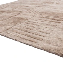 • Denna tidlösa matta passar enkelt in i en mängd olika inredningsstilar. Mattan kommer från kollektionen från det holländska märket WOOOD och är tillverkad av en blandning av 50 % polyester och 50 % bomull. Tack vare denna sammansättning är mattan både bekväm och lätt att underhålla. Det subtila, grafiska motivet i varma taupe-toner ger mattan en lekfull men ändå elegant karaktär. Med denna matta tillför du direkt värme, atmosfär och stil till ditt vardagsrum.