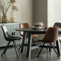 • Denna robusta WOOOD matstol Swen står stadigt på sina svartlackerade metallben. Det formsydda skalet med läderliknande PU gör stolen mycket bekväm att sitta i. Swen-stolens tidlösa design gör den enkel att kombinera med andra designer för en lekfull effekt.