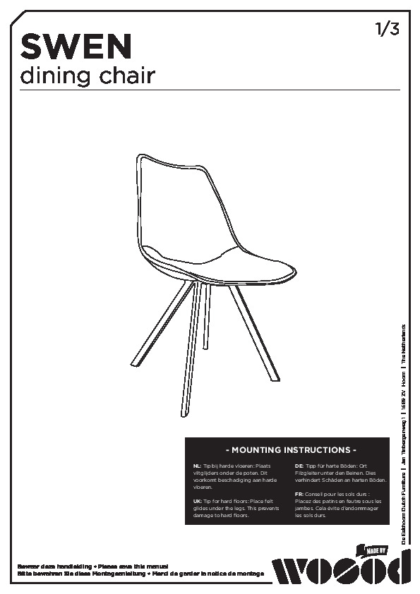 Artikeln levereras i ett paket styck. För att skydda hårda golv inomhus, placera filtglidare på undersidan av benen.