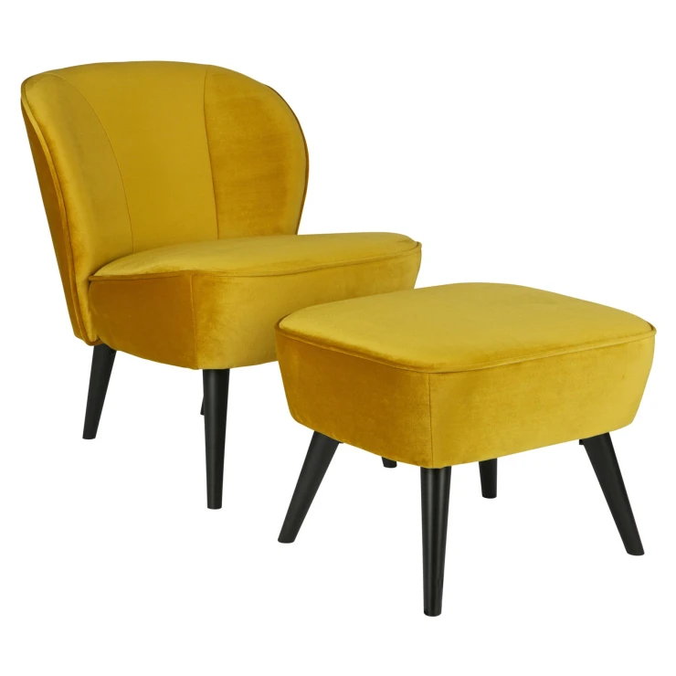 • Hocker Sara har svarta träben och är ockragul klädd i 100 % sammetspolyestertyg. Sara-hockern har en sittyta på 56x36 cm och är 41 cm hög. Kombinera hockern Sara, som också fungerar som en extra sittplats och där du kan koppla av med benen, med fåtöljen Sara. Sara-serien finns i färgerna rostbrun, varmgrön och ockragul. Ej tillgänglig för Storbritannien. Denna artikel är inte brandskyddsmedel.