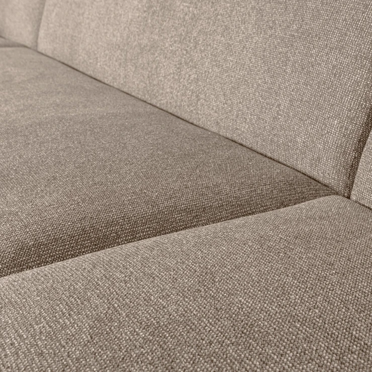 Den sluttande soffan levereras i tre paket. De tre elementen är enkla att koppla ihop med de redan monterade elementkopplingarna. För att skydda hårda golv, placera filtglidare på undersidan av benen.