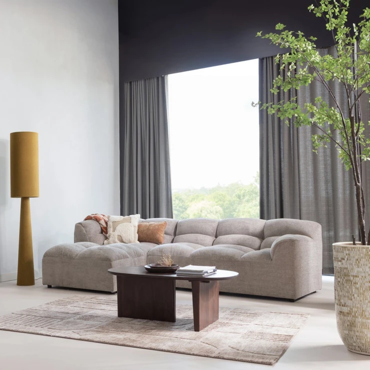 • Upptäck oändlig komfort med den generösa schäslongsoffan Tibas från det holländska inredningsmärket WOOOD. Schäslongen Tibas har en slående och välfylld design, en inbjudan med öppna armar. Den subtila färgnyansen i det vävda tyget ger ett vackert djup till denna möbel. Schäslongen Tibas finns med hörn på både vänster och höger sida, vilket gör den perfekt för olika inredningsplanlösningar.