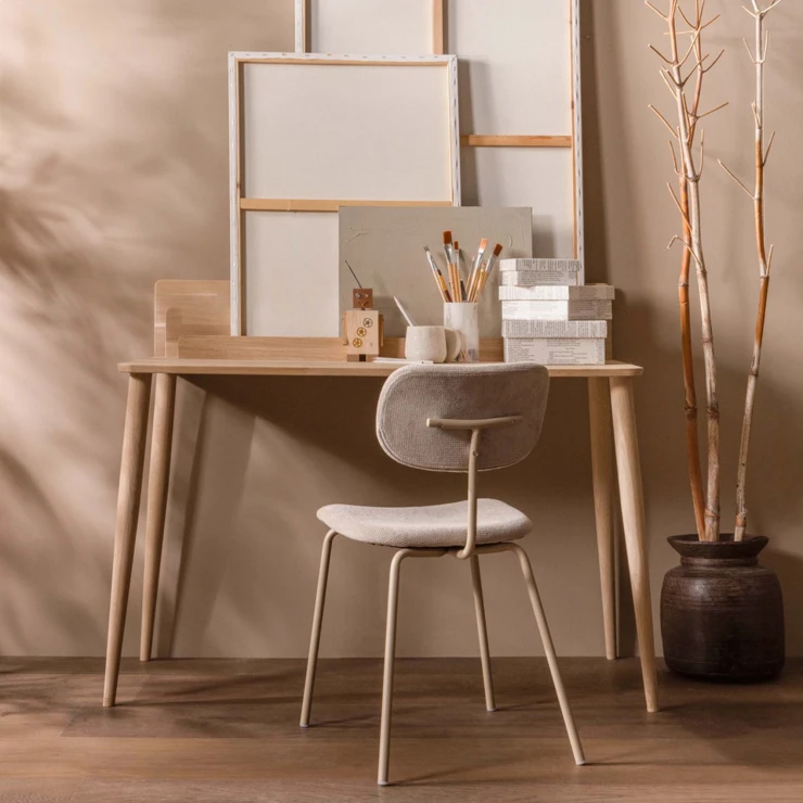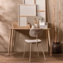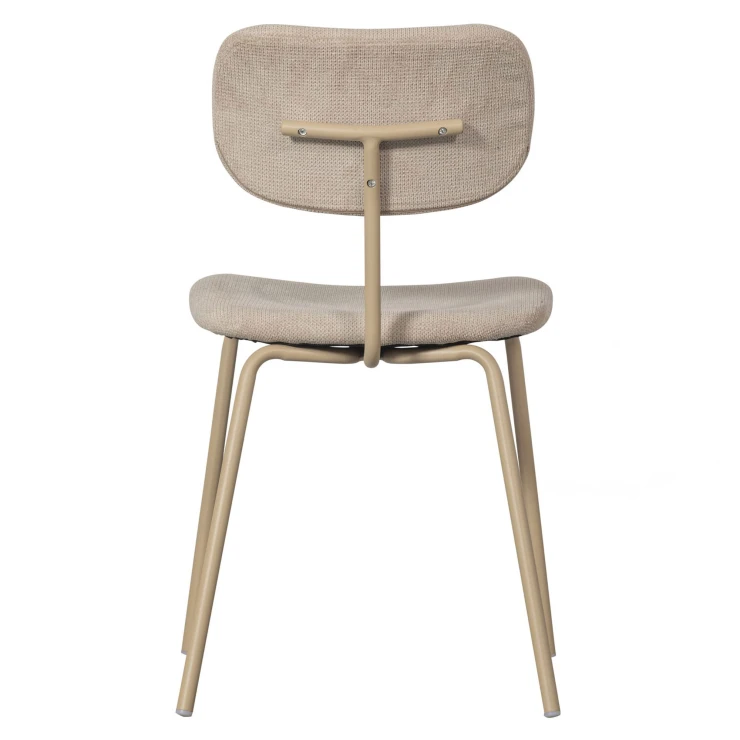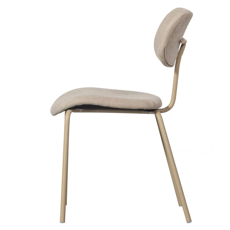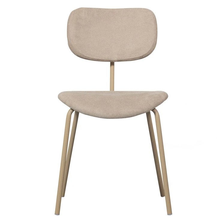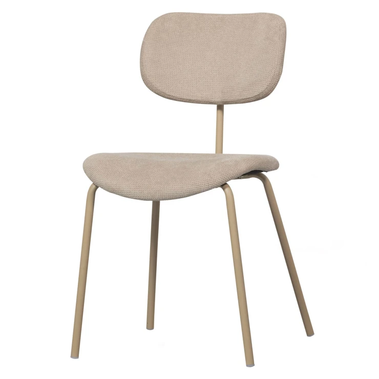 • Snygg i sin enkelhet, det är vår Link matstol. Matstolen från den exklusiva kollektionen från det holländska inredningsmärket WOOOD har en smal metallbas, belagd i en sandfärg. Sitsen är klädd i ett mattblankt, mjukt ribbat tyg med ett distinkt, slingrande randmönster.