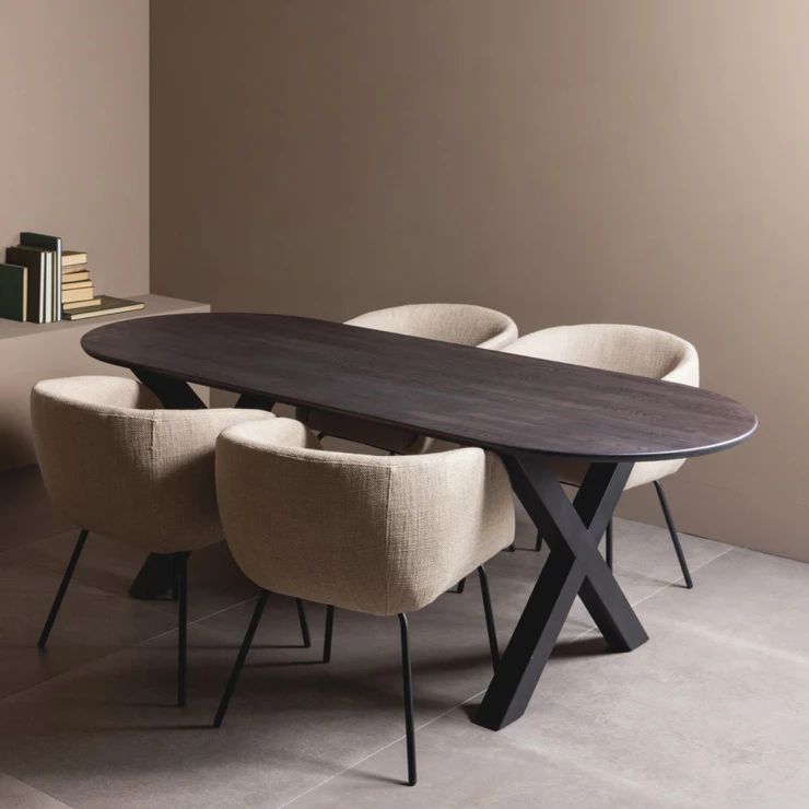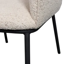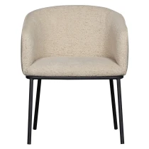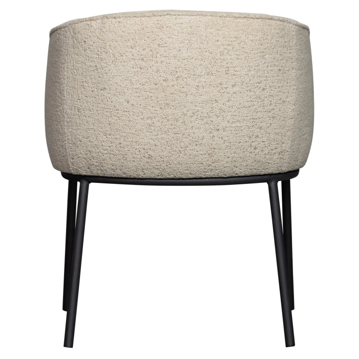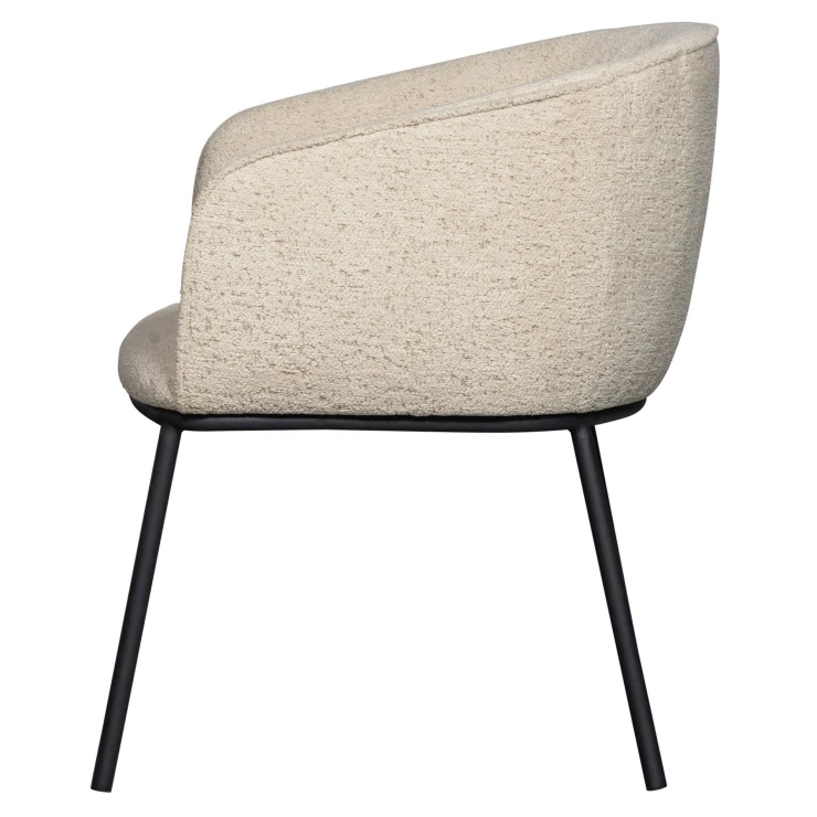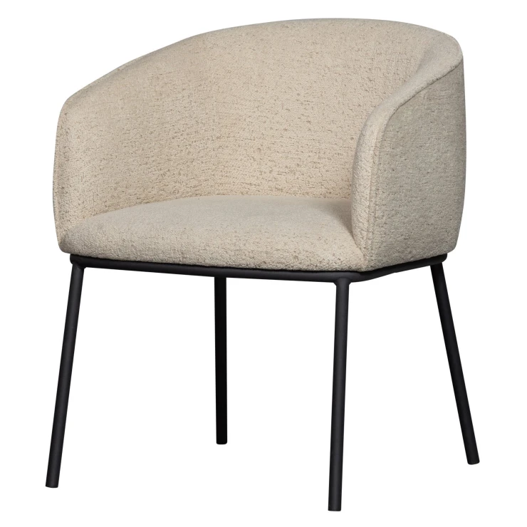 • Matstolen Leon, från kollektionen av det holländska inredningsmärket WOOOD, har en diskret badkarsformad sits klädd i ett varmt bouclétyg. Det avsmalnande metallbenet ger stolen ett luftigt utseende.