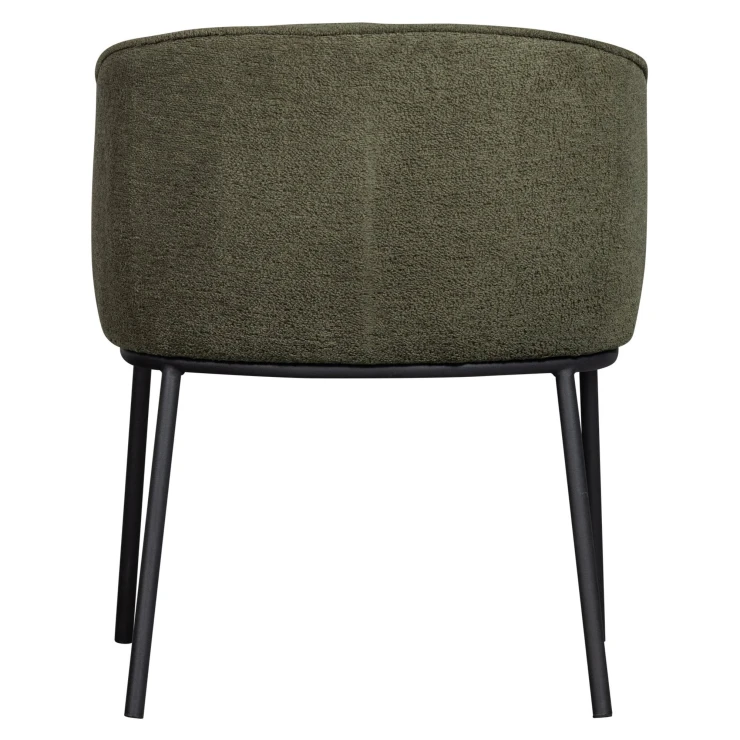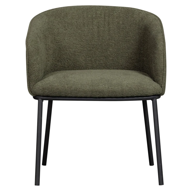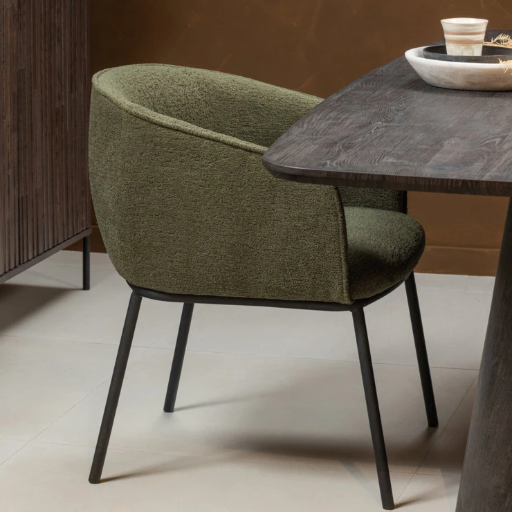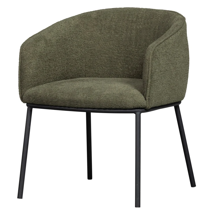 • Matstolen Leon, från kollektionen av det holländska inredningsmärket WOOOD, har en diskret badkarsformad sits klädd i ett varmt bouclétyg. Det avsmalnande metallbenet ger stolen ett luftigt utseende.