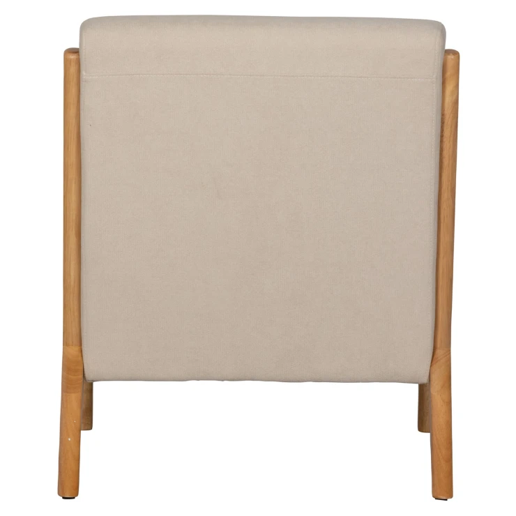 Fåtölj Mark är klädd i vävt tyg i naturfärg. Tyget känns mjukt, är av kraftig kvalitet och är lämpligt för intensiv användning. Tyget är tillverkat av 100 % polyester och har en Martindale på 20 000. Marks konstruktion är tillverkad av plywood. Sitsen har ett normalt skumlager på 24 kg/m3. Ryggen har ett normalt skumlager på 18 kg/m3. Den lösa ryggdynan är fylld med en bomullsfyllning. Stommen på Mark-fåtöljen är gjord av kinesiskt gummiträ.