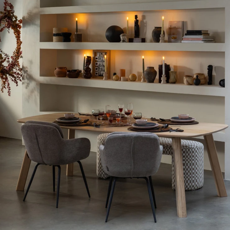 • Med matsalsstolen Runa från det holländska märket WOOOD får du en underbart bekväm sittplats i ditt hem. Stolen är klädd i chenilletyg och har en smal svart metallbas. Den rundade designen ger stolen ett vänligt och lyxigt utseende. Det lätt glänsande chenilletyget ger mjukhet och gör Runa till blickfånget i din matplats.