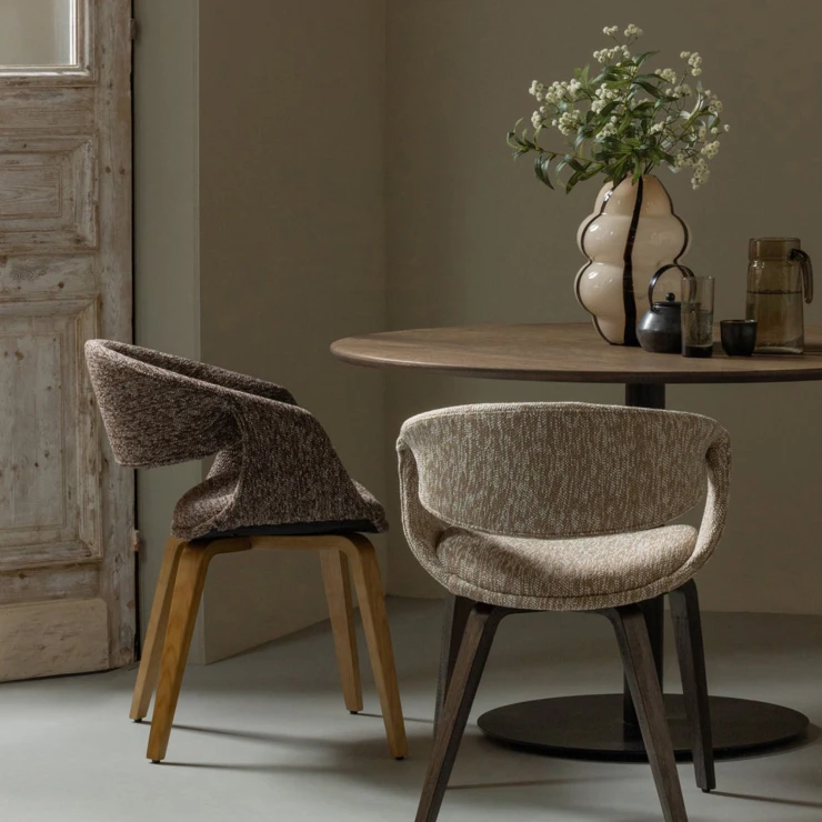 • Matstolen Yossi kommer från kollektionen från det holländska märket WOOOD och har en robust träbas och en bekväm sits. Stolen finns i olika versioner, så att du kan hitta den perfekta matchningen för din inredning. Yossi är klädd med ett vävt tyg av 100 % polyester, vilket ger ett elegant utseende. En speciell detalj är finishen runt armstödet. Denna eleganta och bekväma matstol är perfekt för timmar av middagsupplevelse.