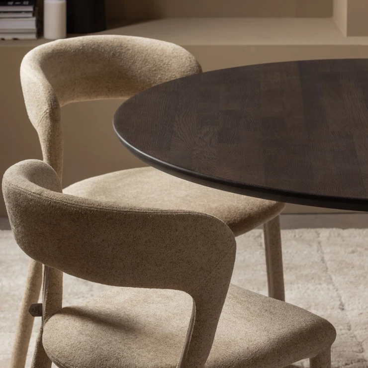 • Matsalsstolen Noble, från kollektionen av det holländska inredningsmärket WOOOD, är ett modernt designexempel. De sluttande linjerna och de stoppade benen ger stolen ett mycket lyxigt och unikt utseende. Välj din favorit från Noble eller blanda de snygga färgerna vid ditt matbord!