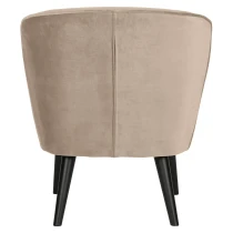 Sara är tillverkad av en kombination av lövträ och MDF. Sitsen är fylld med VP35-skum och ryggen innehåller VP21-skum, vilket ger en fast och stödjande sittkomfort. Skumsitsen hålls i form av starka resårband. Benen är tillverkade av björkträ. Sara är klädd i en lätt, blank sammet. Vårt Jarra-sammetstyg har ett lyxigt utseende. Tyget känns fint och har en fin, lätt lyster. Jarra-sammeten består av 100 % polyester och har en fyllig och tung kvalitet. Materialet är därför lämpligt för intensiv användning (Martindale 100 000). Förutom den snygga designen håller sammetstyget sig vackert länge. Vårt Jarra-tyg noppar sig inte lätt och är färgäkta. Tyget är, till mångas förvåning, ett mycket lättskött tyg.