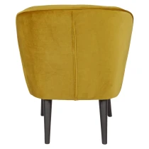 Sara är tillverkad av en kombination av lövträ och MDF. Sitsen är fylld med VP35-skum och ryggen innehåller VP21-skum, vilket ger en fast och stödjande sittkomfort. Skumsitsen hålls i form av starka resårband. Benen är tillverkade av björkträ. Sara är klädd i en lätt, blank sammet. Vårt Jarra-sammetstyg har ett lyxigt utseende. Tyget känns fint och har en fin, lätt lyster. Jarra-sammeten består av 100 % polyester och har en fyllig och tung kvalitet. Materialet är därför lämpligt för intensiv användning (Martindale 100 000). Förutom den snygga designen håller sammetstyget sig vackert länge. Vårt Jarra-tyg noppar sig inte lätt och är färgäkta. Tyget är, till mångas förvåning, ett mycket lättskött tyg.