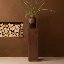 • Växtstället Enid kommer från kollektionen från det holländska inredningsmärket WOOOD. Enid är en generös och robust pelare med en enkel design. Det släta träverket är avslutat med valnötsfaner, så Enid smälter enkelt in i olika inredningsstilar, från bohemisk till japandi.