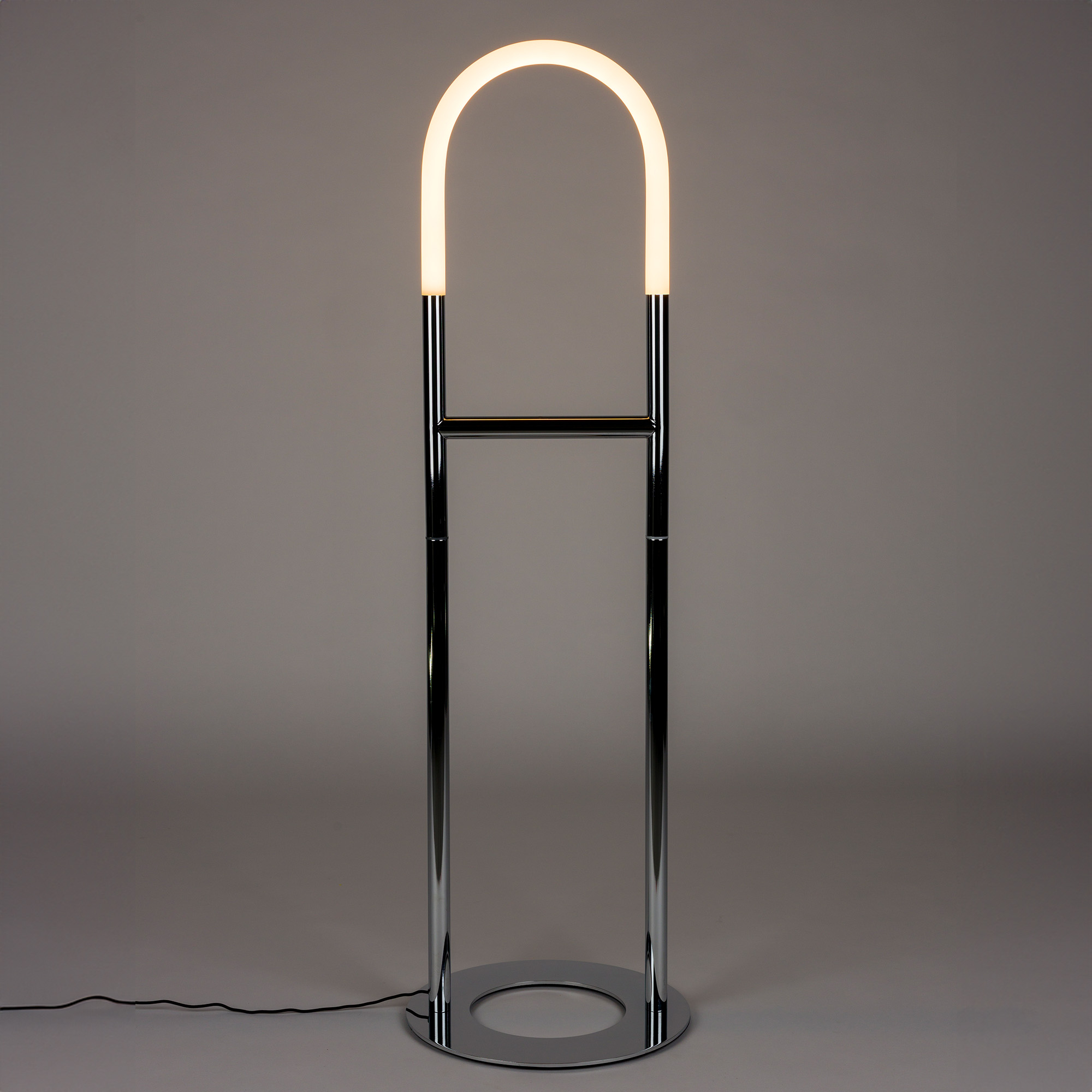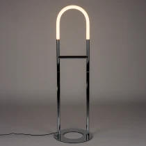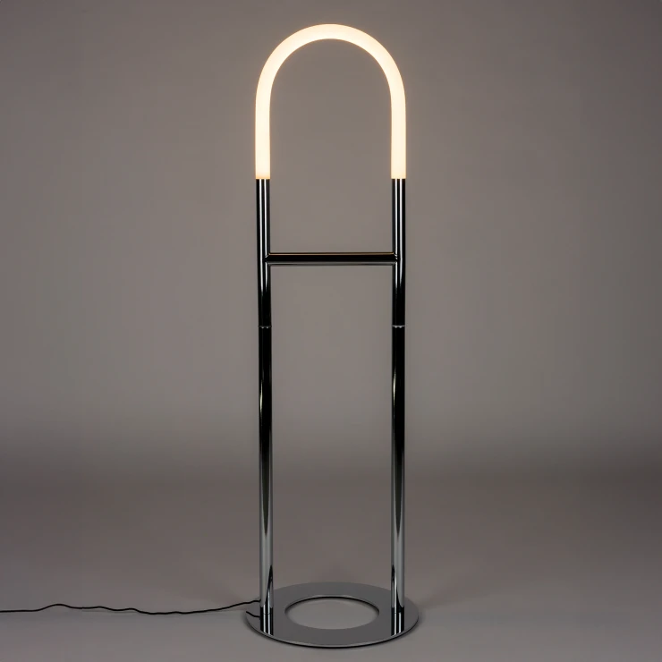 • Golvlampa Arch från Zuiver är en harmonisk fusion av antik romersk arkitektur och modern industriell design. Inspirerad av ikoniska byggnadsverk som Pont du Gard och Colosseums ruiner speglar lampan romersk elegans i en nutida tolkning. Den hyllar de klassiska triumfbågarna genom att översätta skulpturala former till ett fräscht och modernt uttryck.