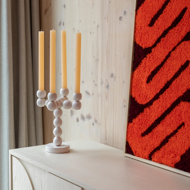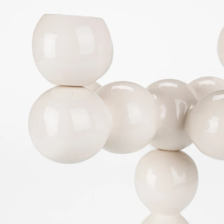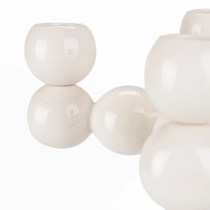 • Bubbles ljusstake är en fängslande blandning av elegans och stil som smälter sömlöst in i alla interiörer. Den är tillverkad i gjuten aluminium med en glansig beige finish, och designen är inspirerad av bubblornas lekfulla skönhet.